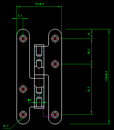 191101 110×55×2.5 mm"h"hinge